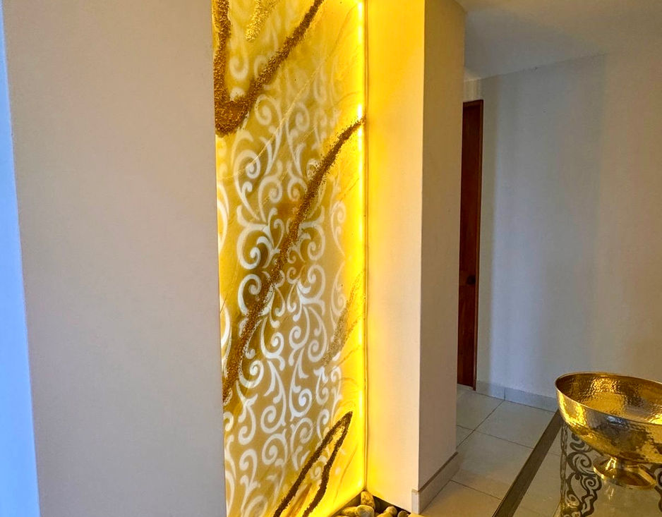🔹 Unique iron wall panels shaped like flowers, adding character and sophistication.
